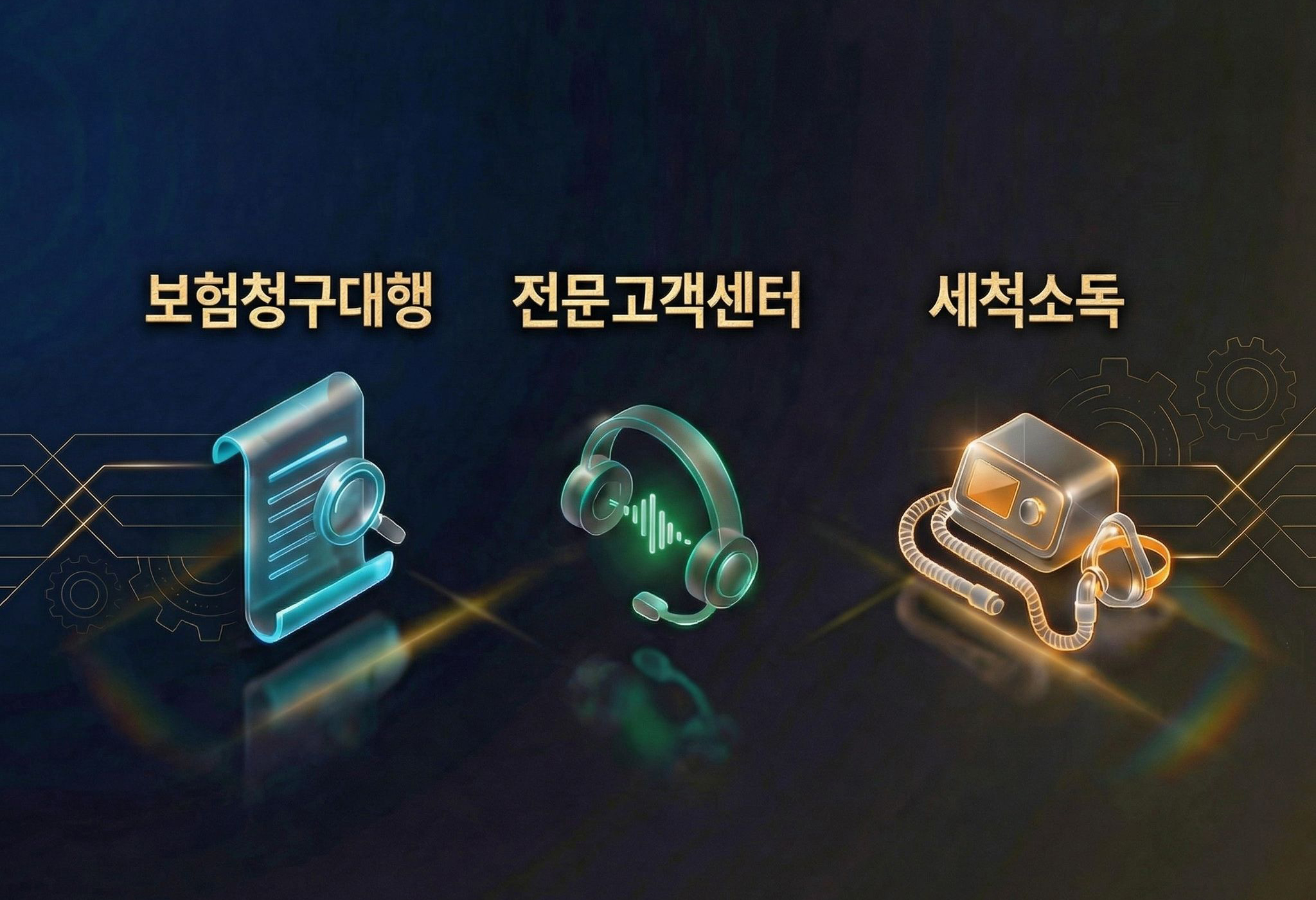 양압기 전문 아웃소싱 서비스 CPAP Professional Outsourcing Services 비용 절감 - 업무 효율화 - 전문성 강화 핵심역량에 집중하여 비즈니스를 빠르게 성장할 수 있습니다